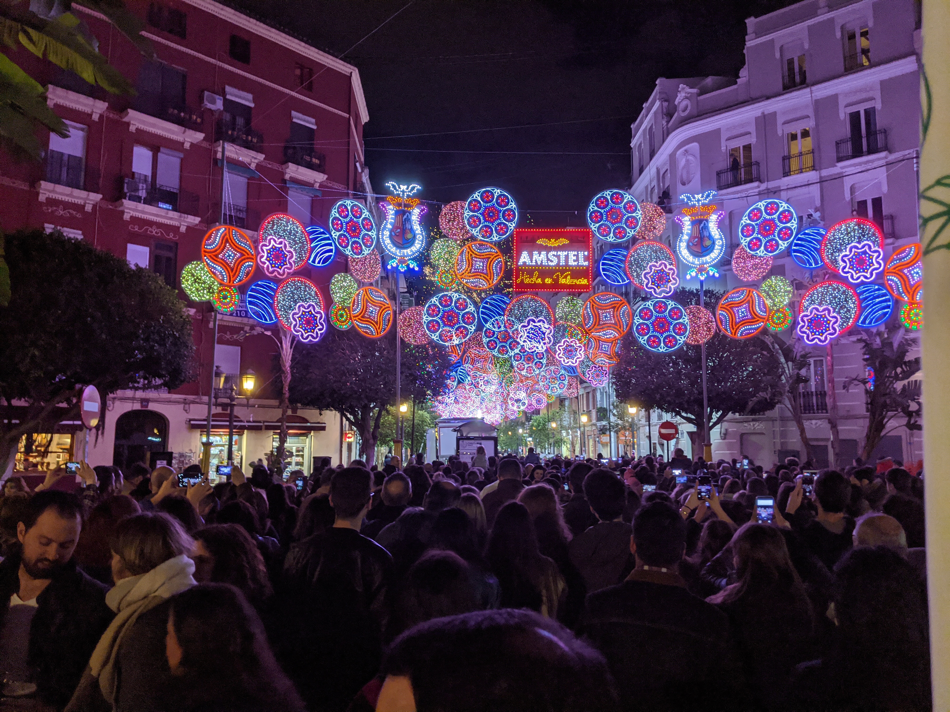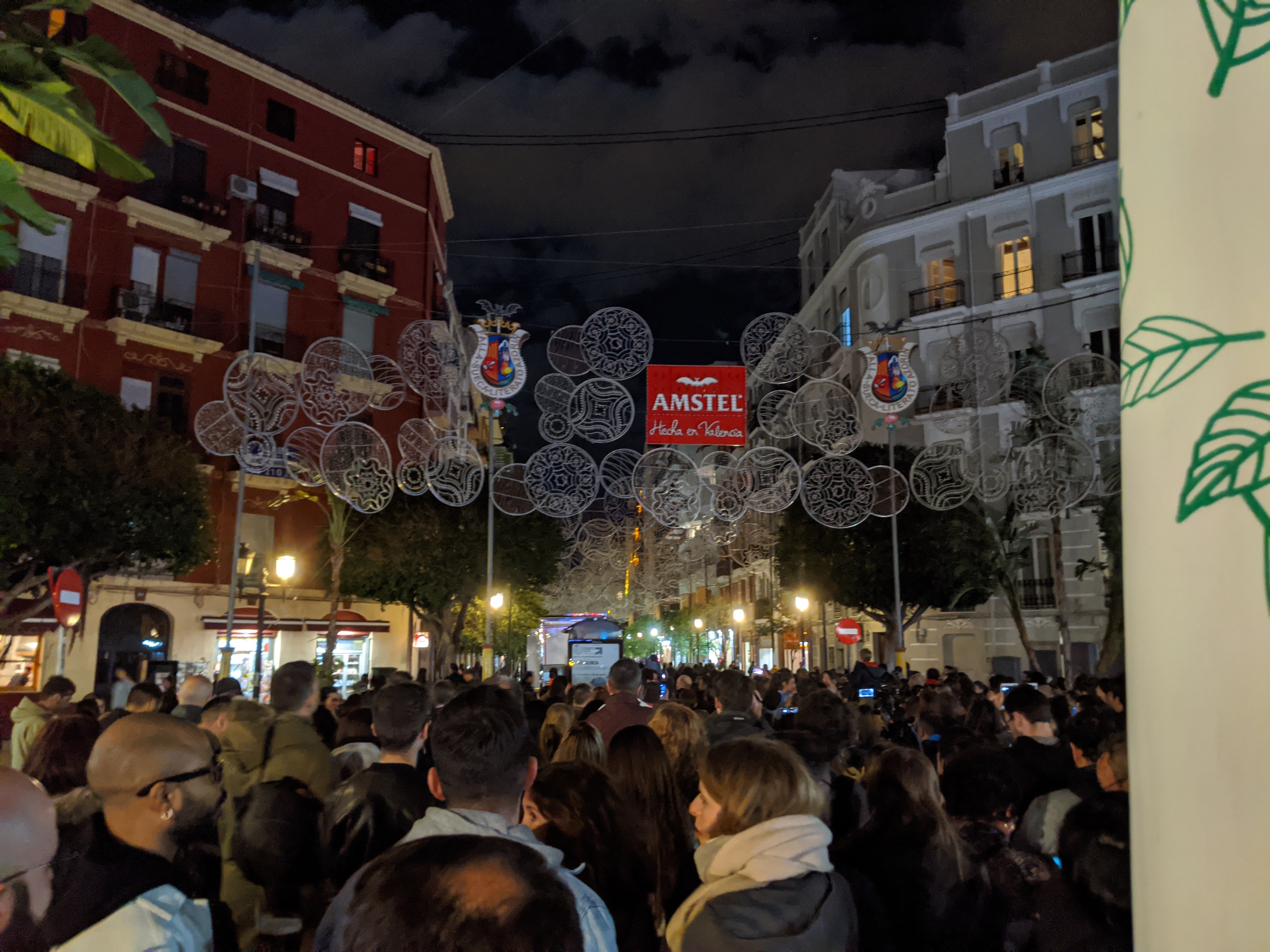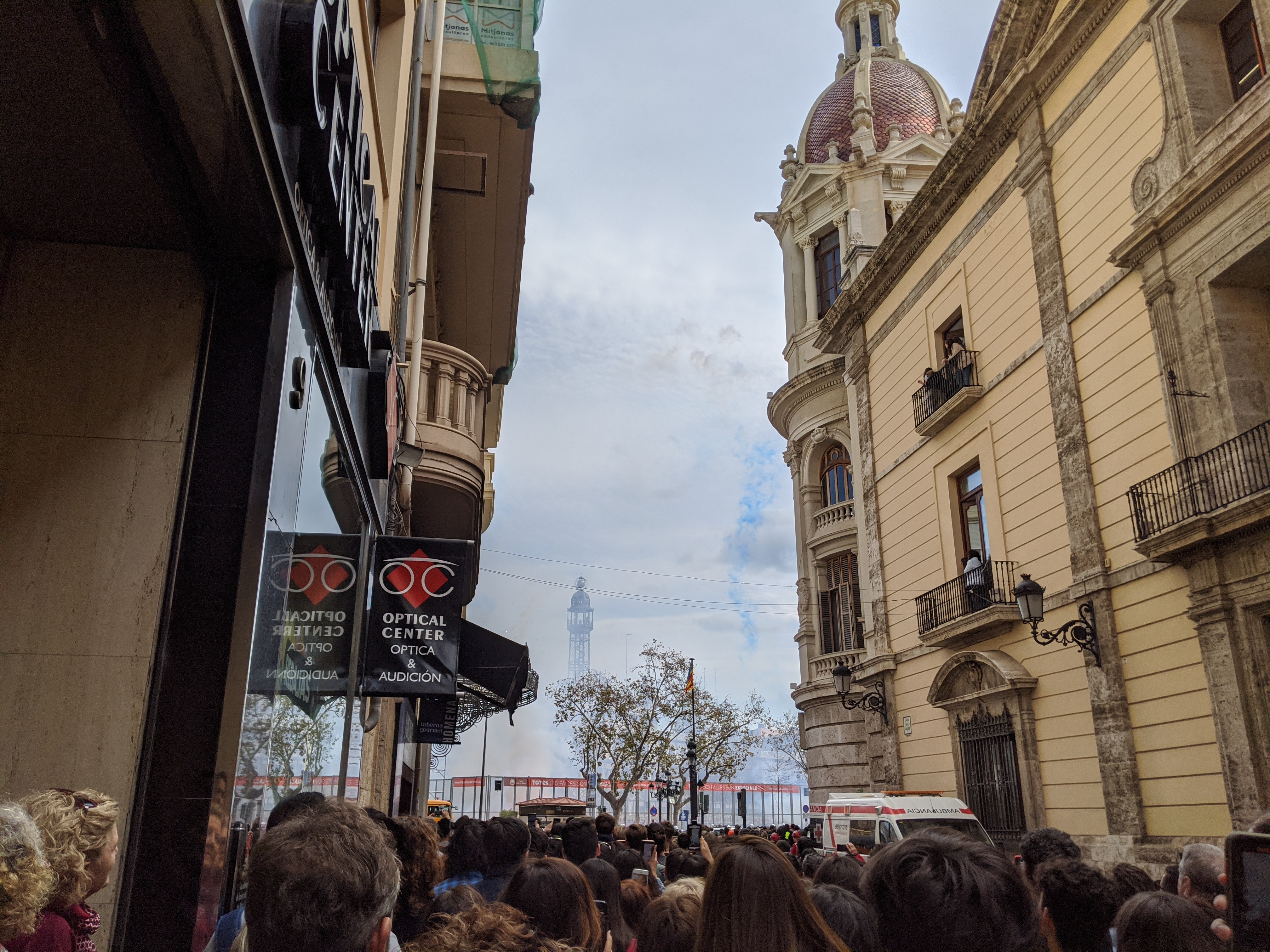 This being the month of Las Fallas, Valencia’s signature event for the year, the locals aren’t about to let a little thing like the plague get in the way of their celebration. Crowds of thousands gather daily for fireworks displays and street lighting ceremonies, standing cheek-by-jowl to enjoy the show.