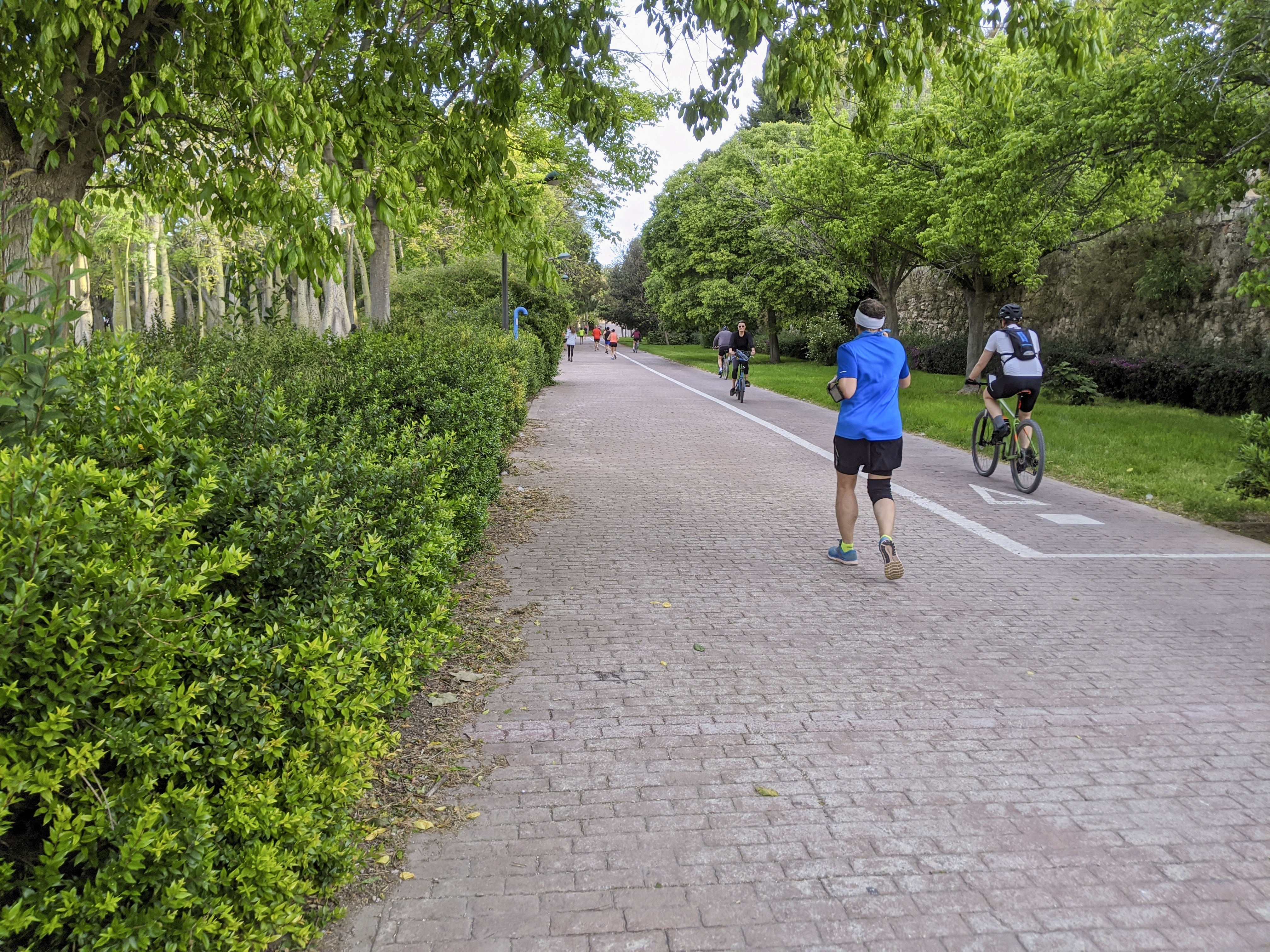 Our available area includes all of the old part of the city, a big chunk of the middle of the Turia Garden (where they turned the river bed into a garden) and a little bit of Benimaclet neighborhood north of the park, including the Jardins de Real (Royal Gardens). It’s easy and entertaining to get an hour’s worth of energetic walking in and the people watching is fantastic. Probably half of the walkers are wearing masks, half don’t (we’re in the latter half but work really hard to maintain the 2 meter distance). We carry masks with us in case we find a shop to step into or need to get groceries. A few places are open for takeaway; from what I can tell they’re bread and sandwich shops.