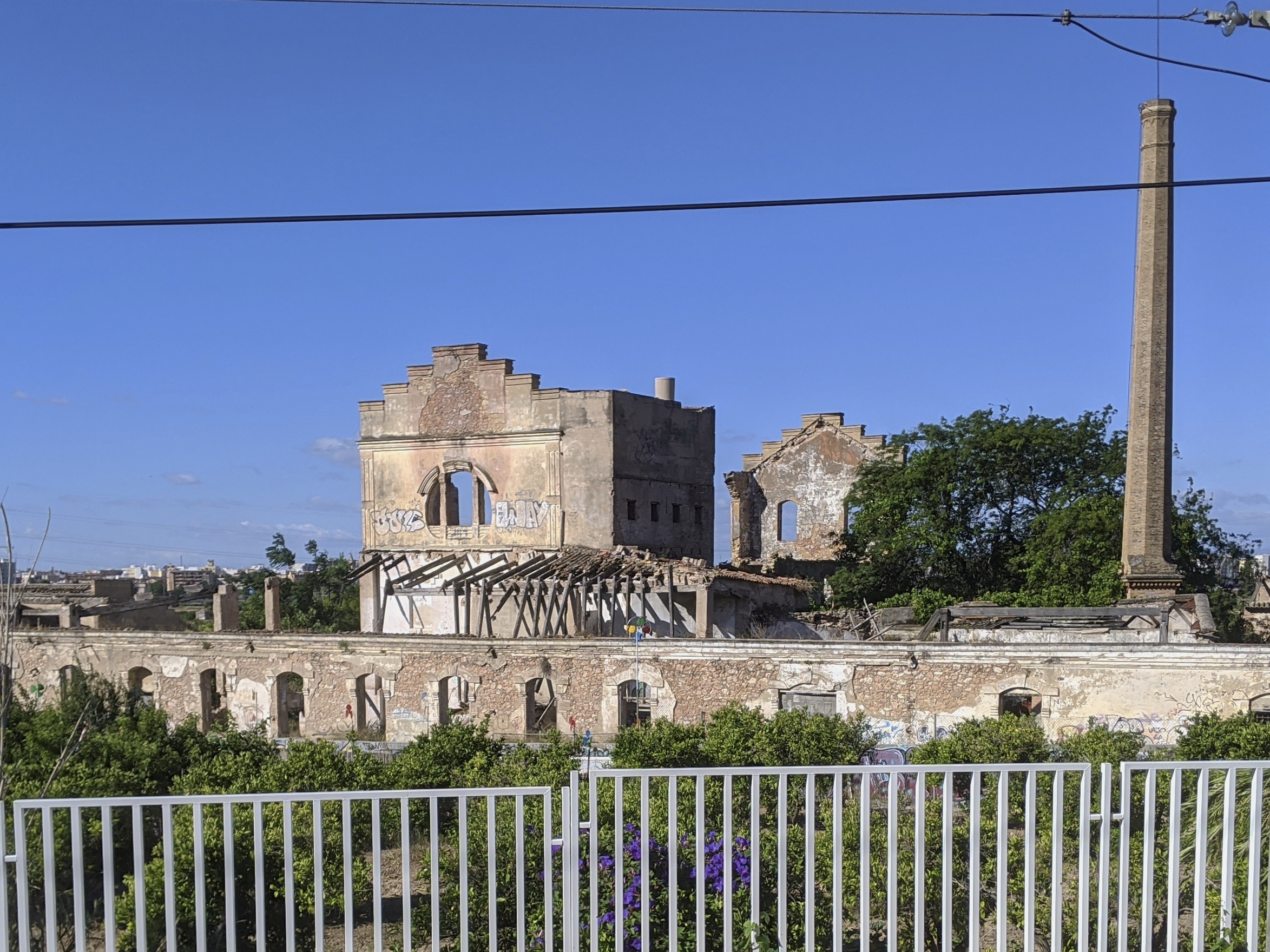 I rode the Metro out to the outskirts of town, then walked back. First picture was a view of the city across the fields, next is an abandoned factory, third is a view from closer in.