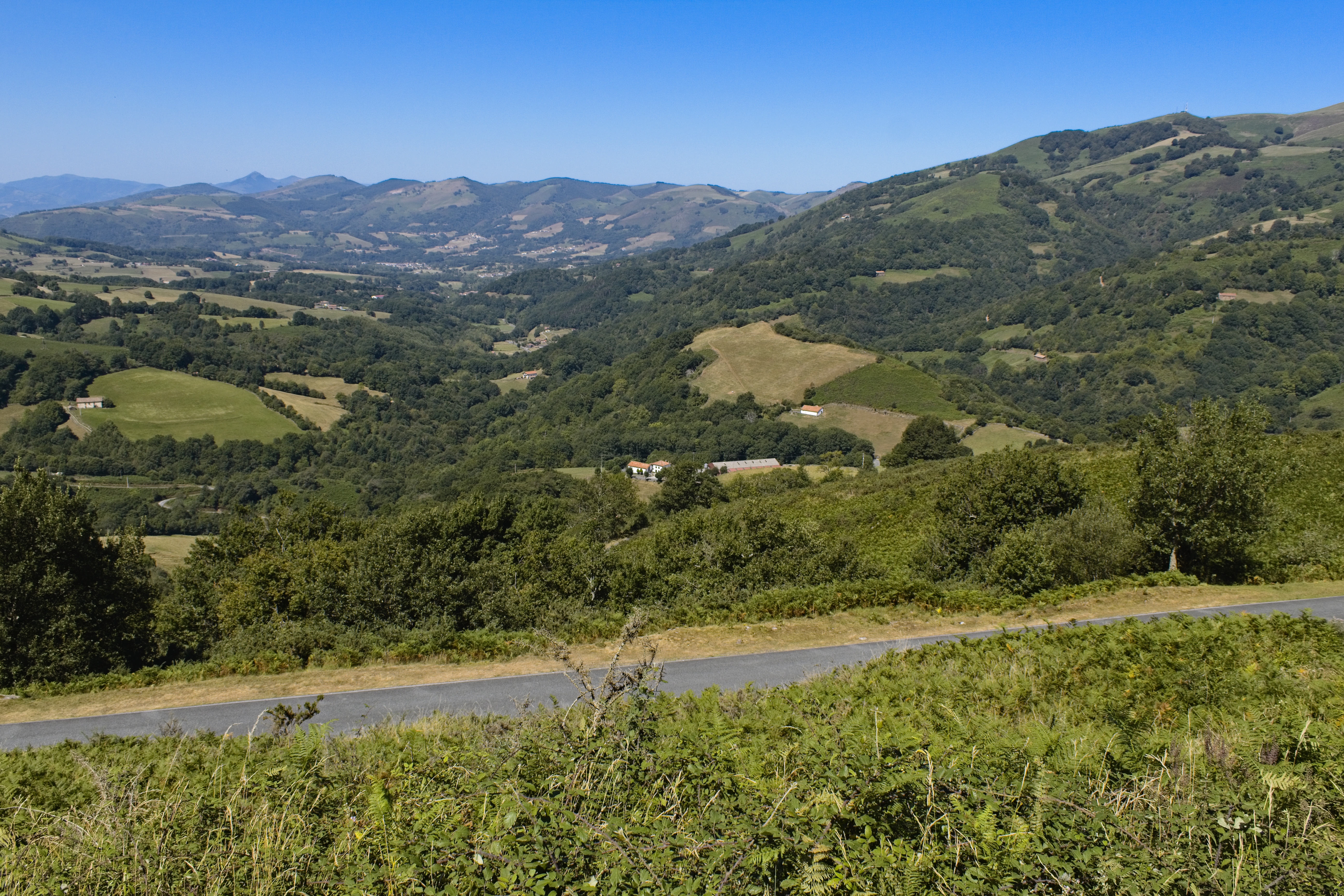 Looking back across the valley at Ibardin. Note the number of cars center left — Ibardin is like Bellingham, where instead of Canadians coming to shop, you get French. Many of the stores were outlets that sold in bulk.