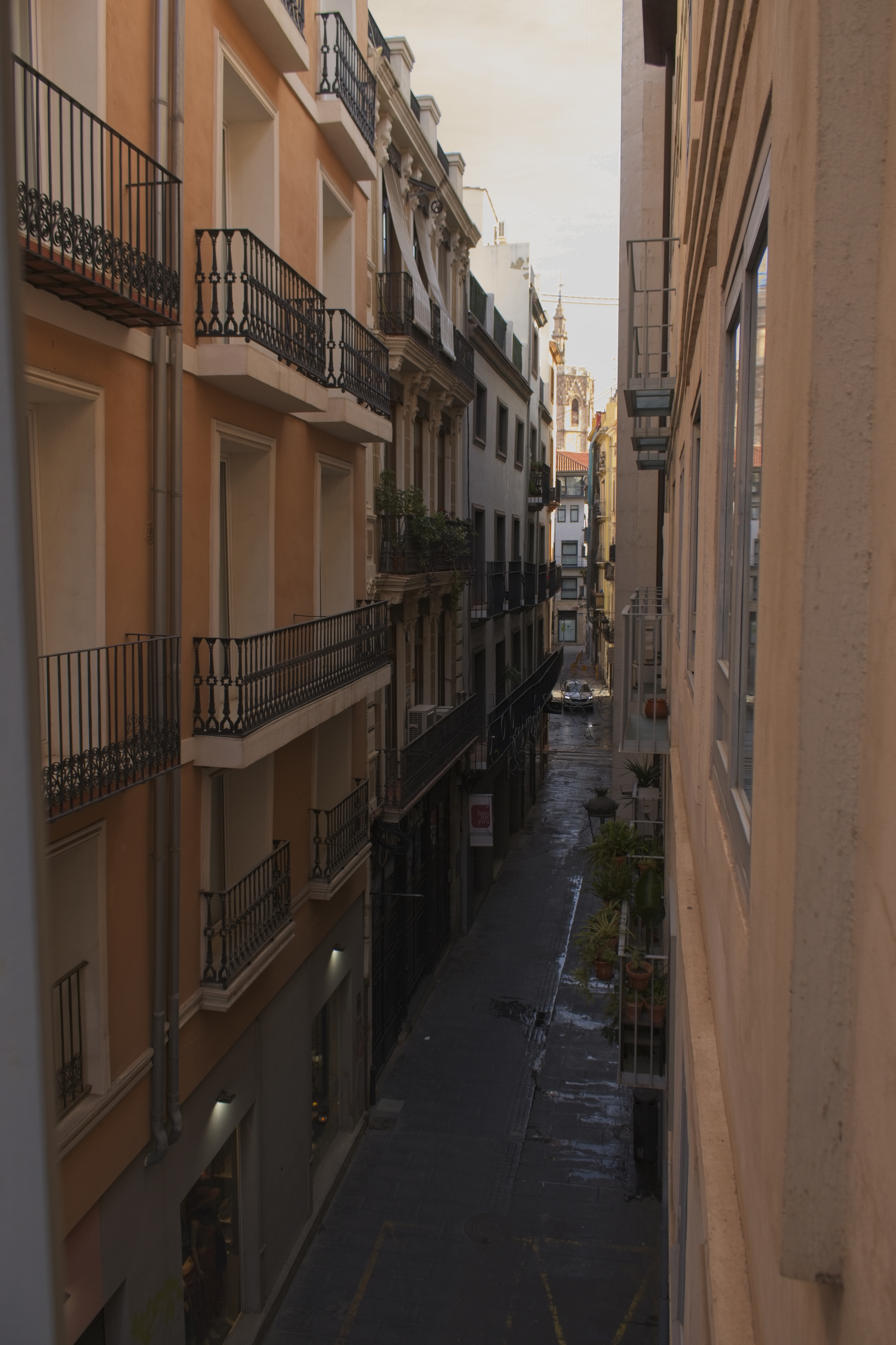 The other street on our corner spot. Looming in the distance is the Miguelete, which we could also see (and hear, as it chimed the hours) from our old flat
