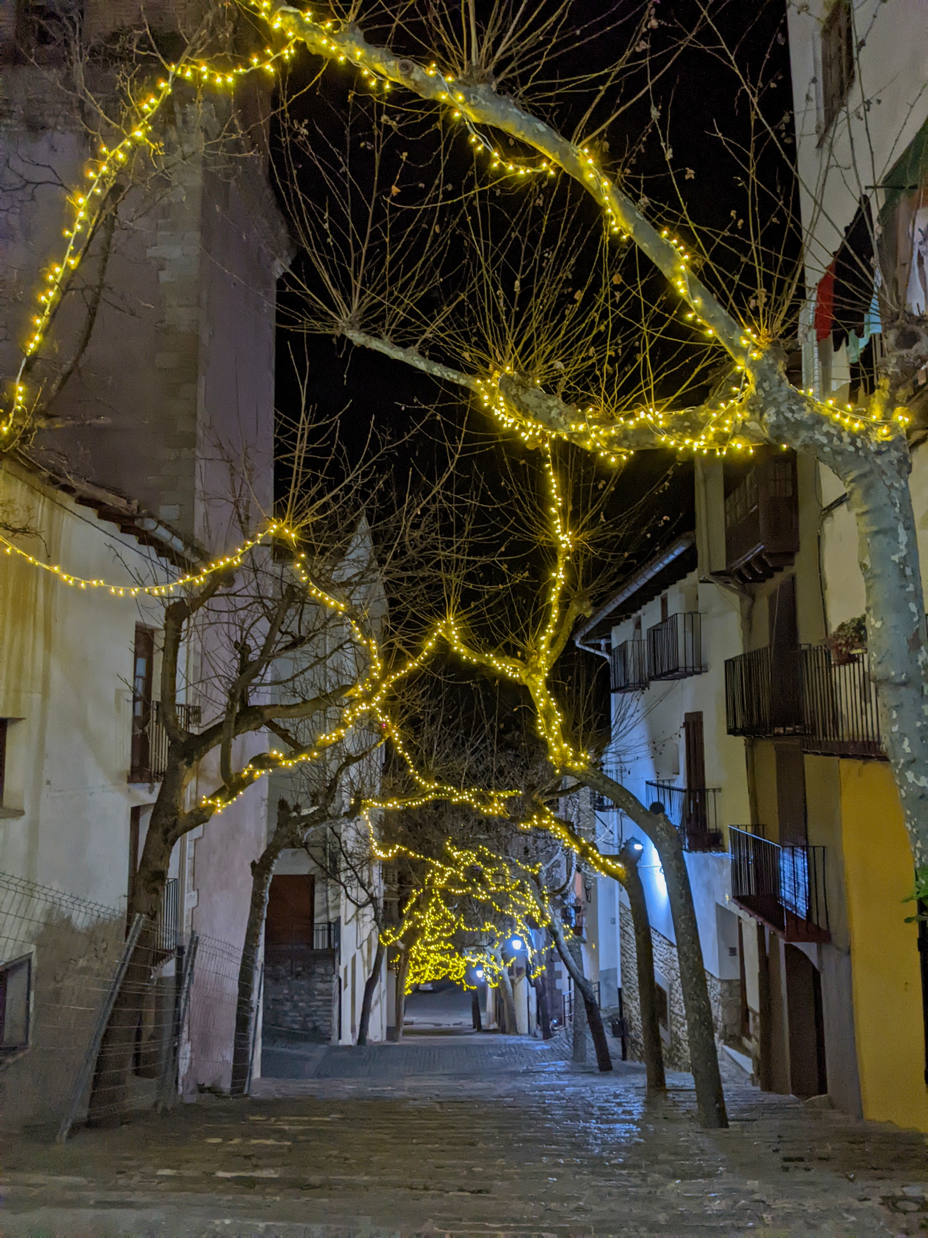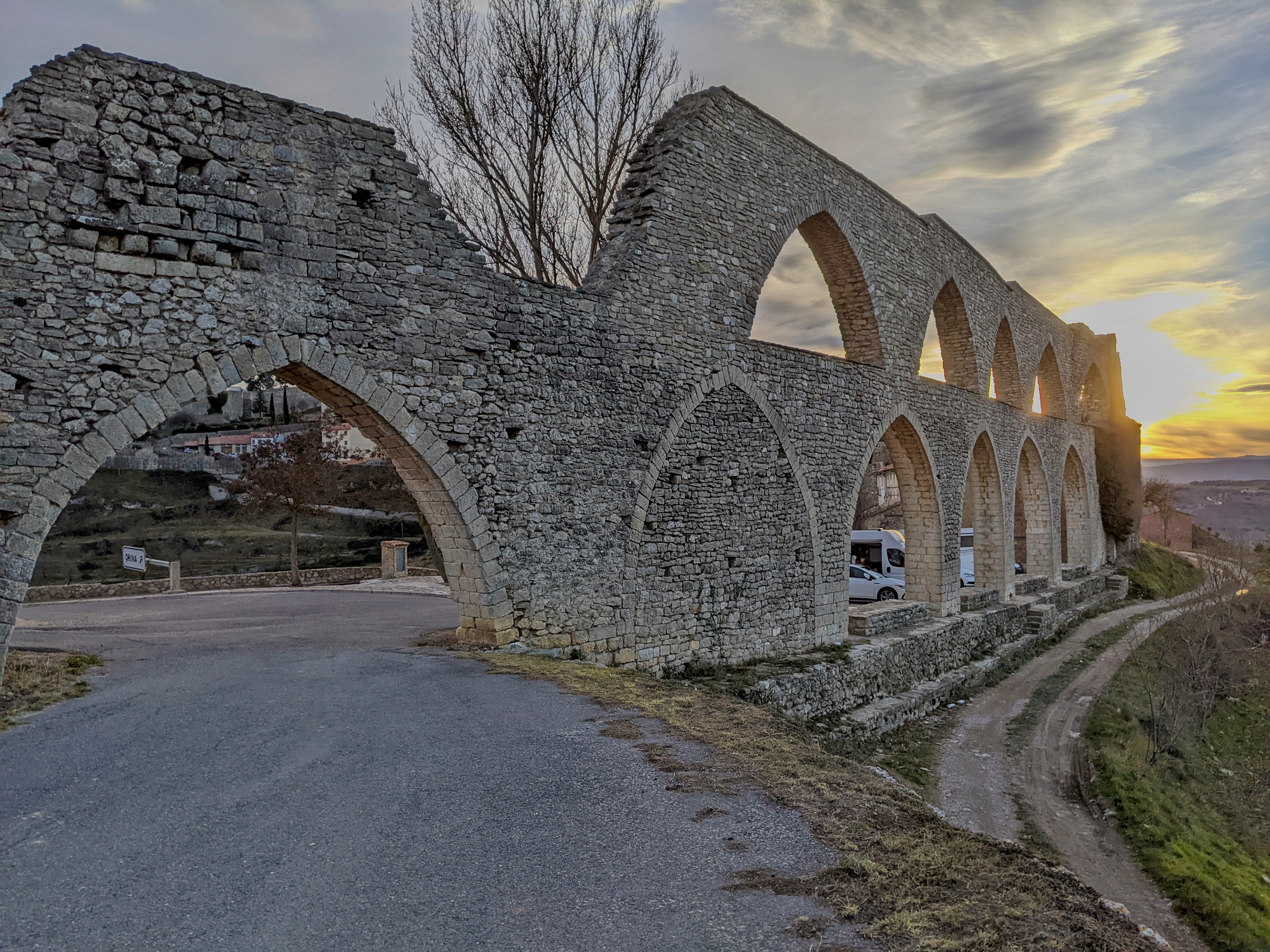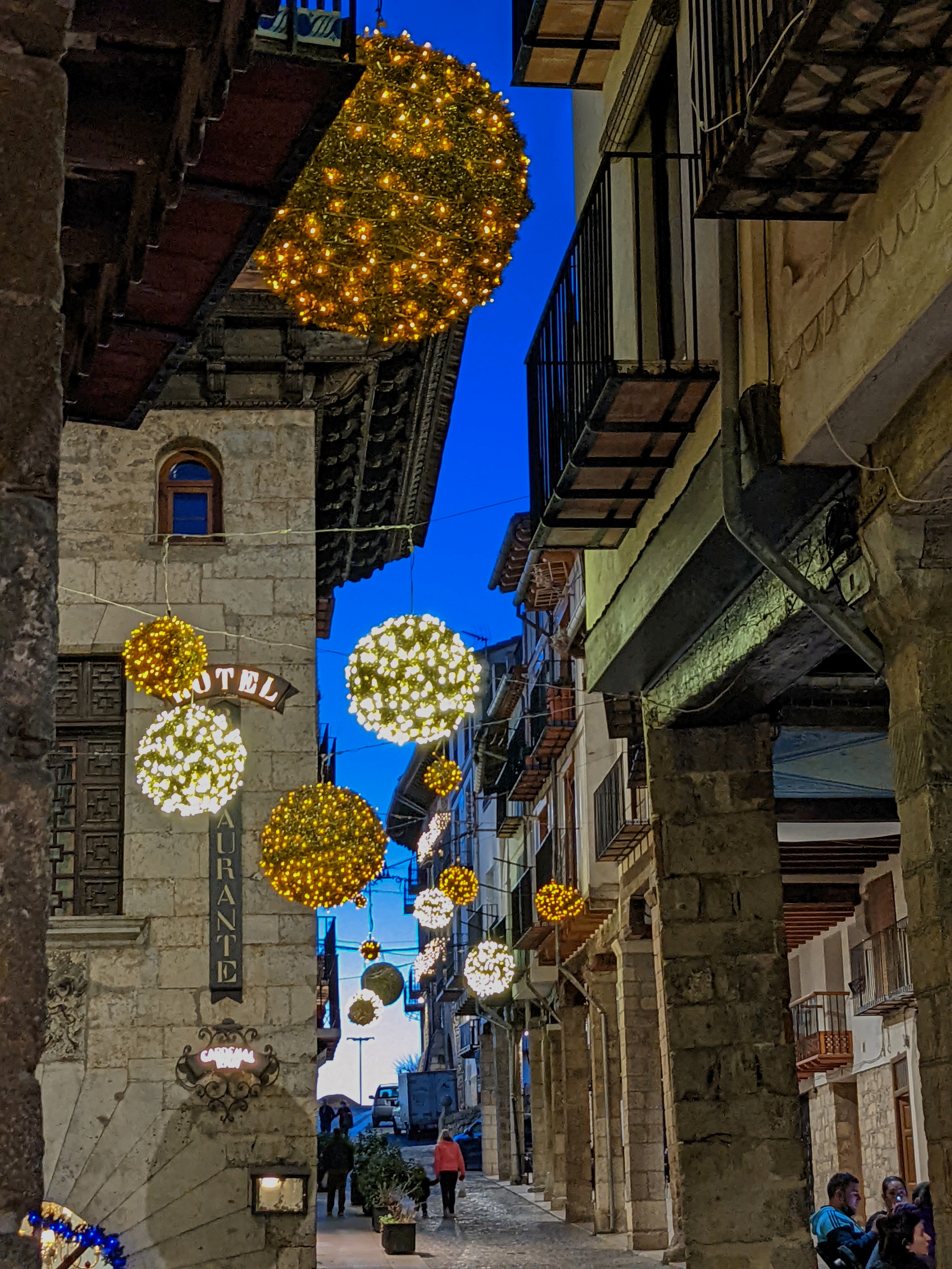 After the hike, the plan had always been to grab a cab from Morella back to Forcall, it’s only about 10 KM by road. We did not count on the fact that Morella has no taxi service. Further, we didn’t count on Forcall’s one taxi driver to be taking a New Years holiday. Cindy headed into the bar to see if she could find someone who would be willing to give us a ride while I called the hotel to see what they could do. It was getting dark at this point and we were beginning to worry we’d have to figure out how to walk back. Fortunately the hotel found a taxi driver who was willing to come fetch us from somewhere a half hour plus away and for a mere € 50 we were whisked back to our hotel in minivan luxury.
