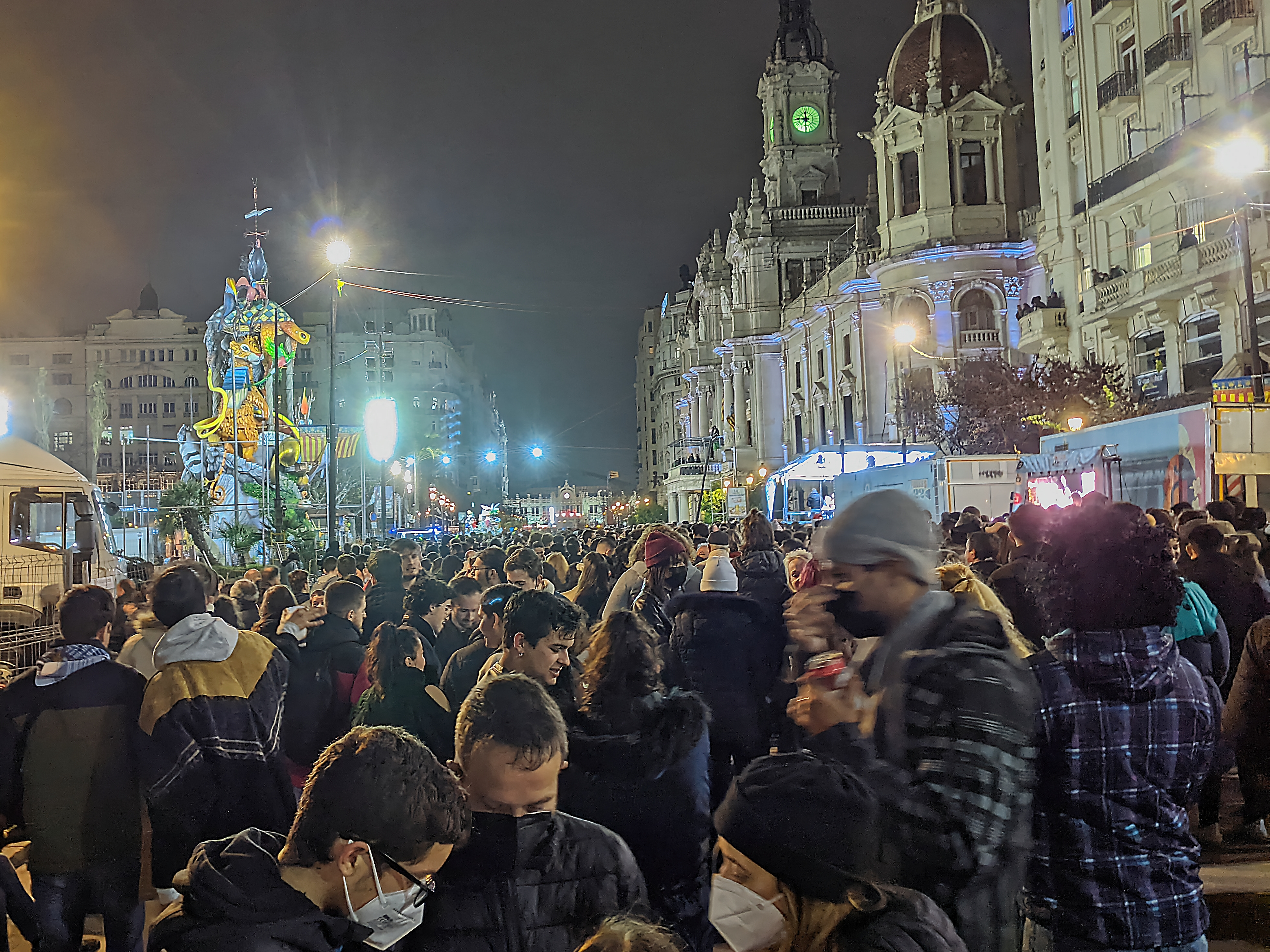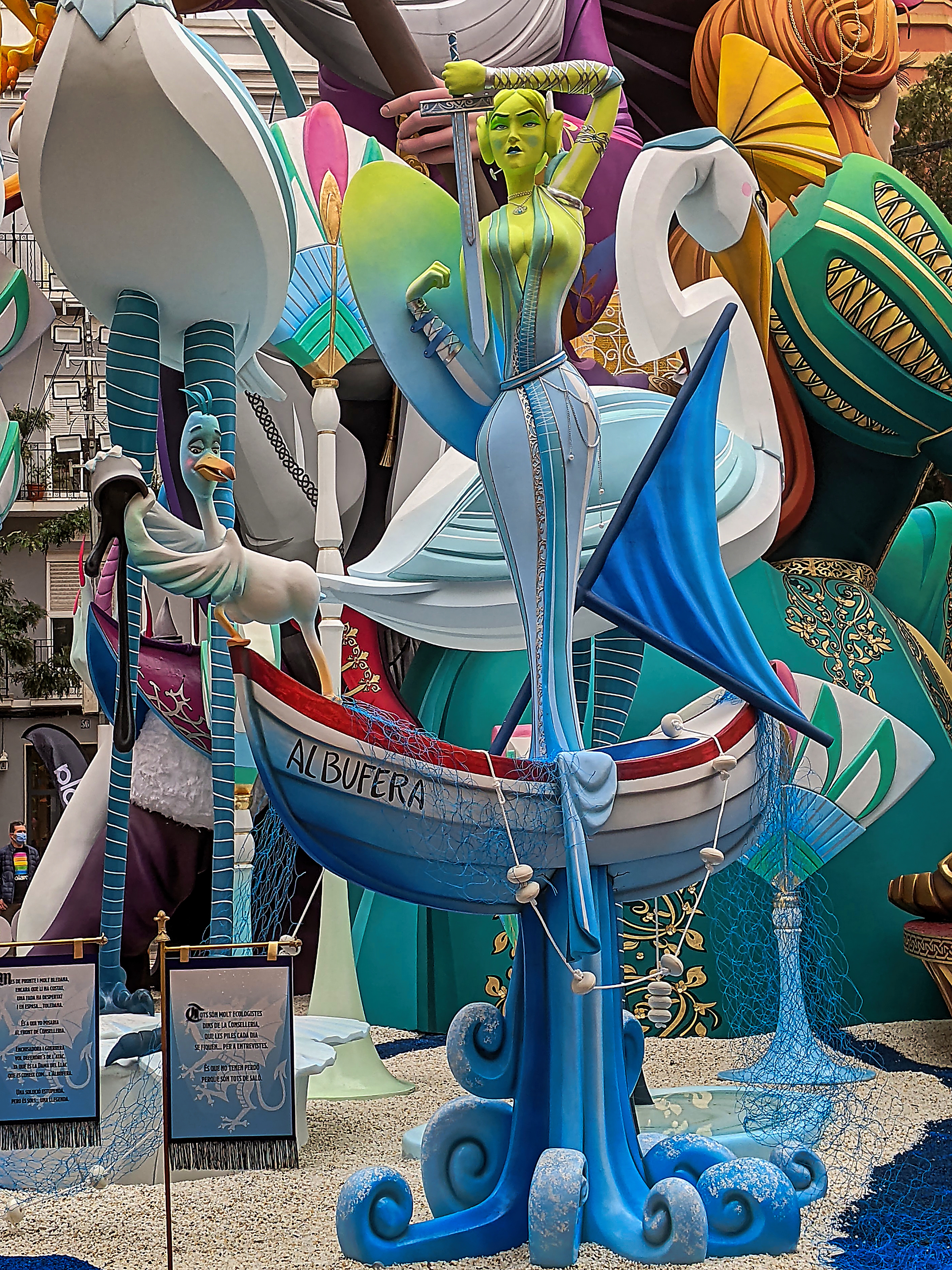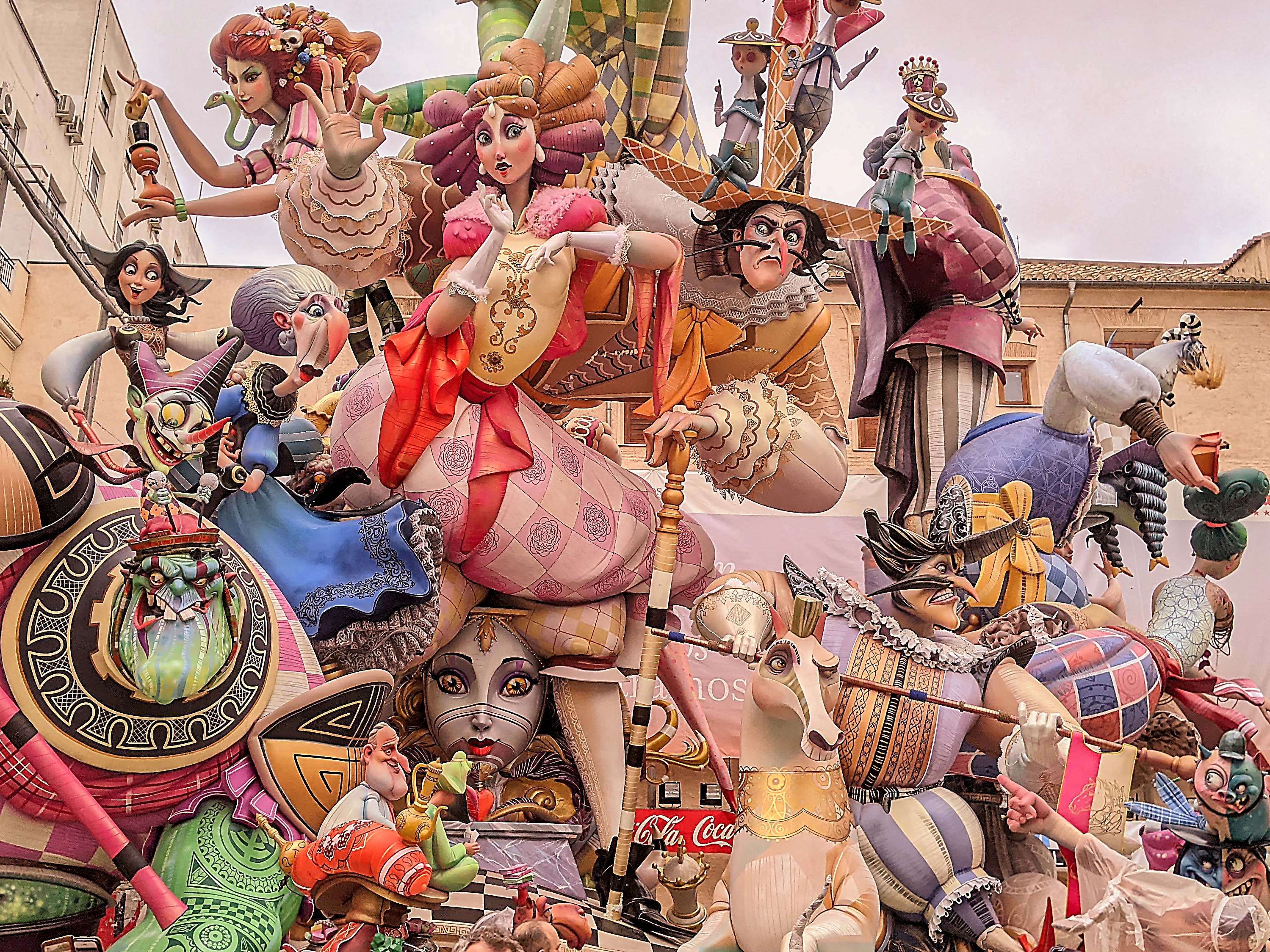 Las Fallas is a uniquely Valencian event that usally takes place in March every year, in which elaborate sculptures are constructed and painted over the course of the year, assembled…and then burned. It’s the biggest event in Valencia every year and this year it was even bigger because it had been postponed for two years thanks to Covid. Turnout for this year’s event was enormous and enthusiastic and the fallas (a word that has several meanings, in this case the groups that construct the sculptures (or fallas) in the year between Fallas (the event)) had budget saved up plus extra funding from the city to make the sculptures bigger and more elaborate than ever.