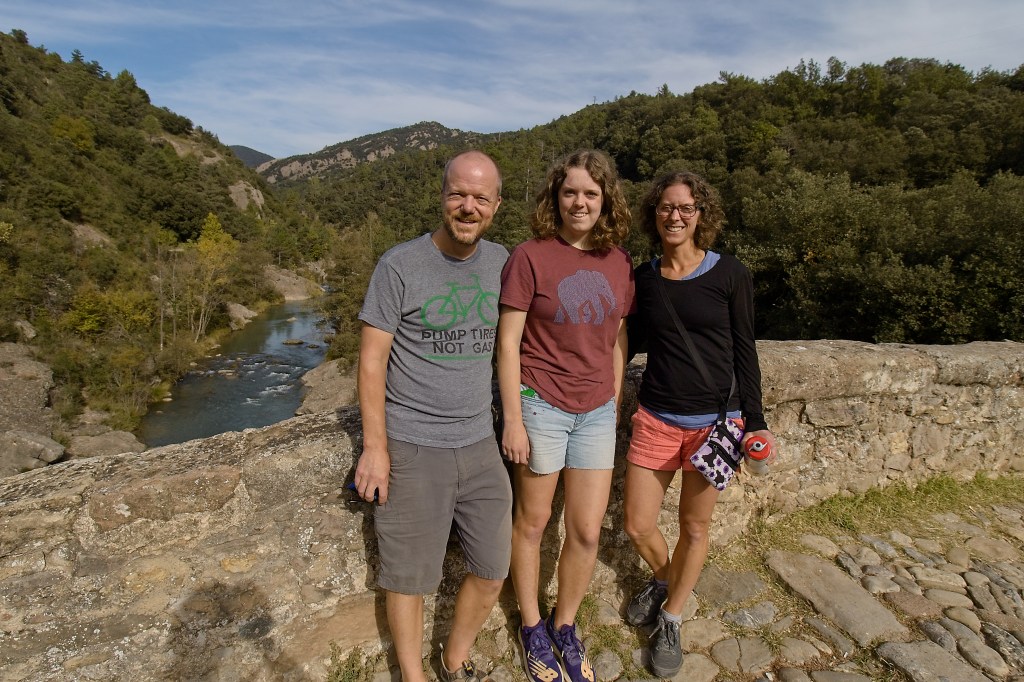 Our first day’s hike was in Parc Natural del Cadí-Moixeró, where we found a little walk next to a river, over a Roman bridge and through the woods. Further upriver was a dam that regulated the river flow. We got close enough to see it but weren’t able to see the lake from where we were.