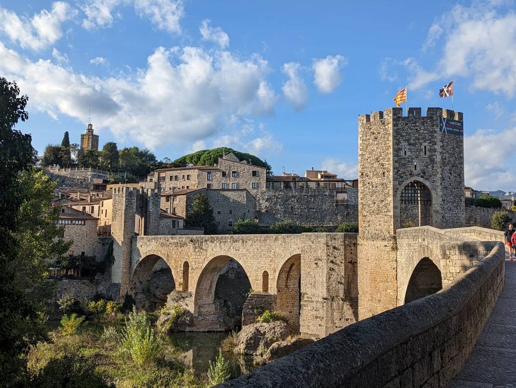 We took a little side trip to Besalú, county seat of the comarca of Besalú. Wilfred the Hairy, credited with the unification of Catalonia, was Count of Besalú. [Wikipedia] It’s know particularly for its picturesque bridge across the river Fluvia into the old town.