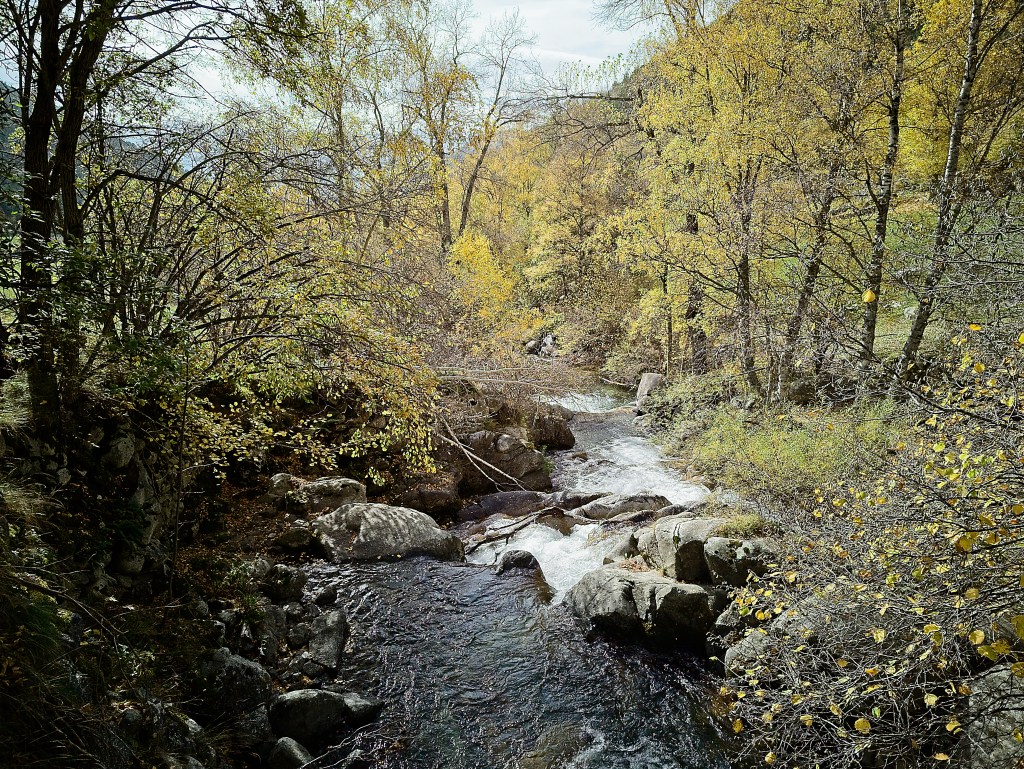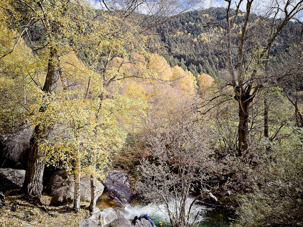 We have family in the country. Our niece and nephew Katy and Joe and their daughter Elsa are teaching in Barcelona for a year. We hadn’t seen them and they had some time off for All Saints Day so we grabbed the train to BCN, rented a car and took them up to the foothils of the Pyrenees to find some fall color.