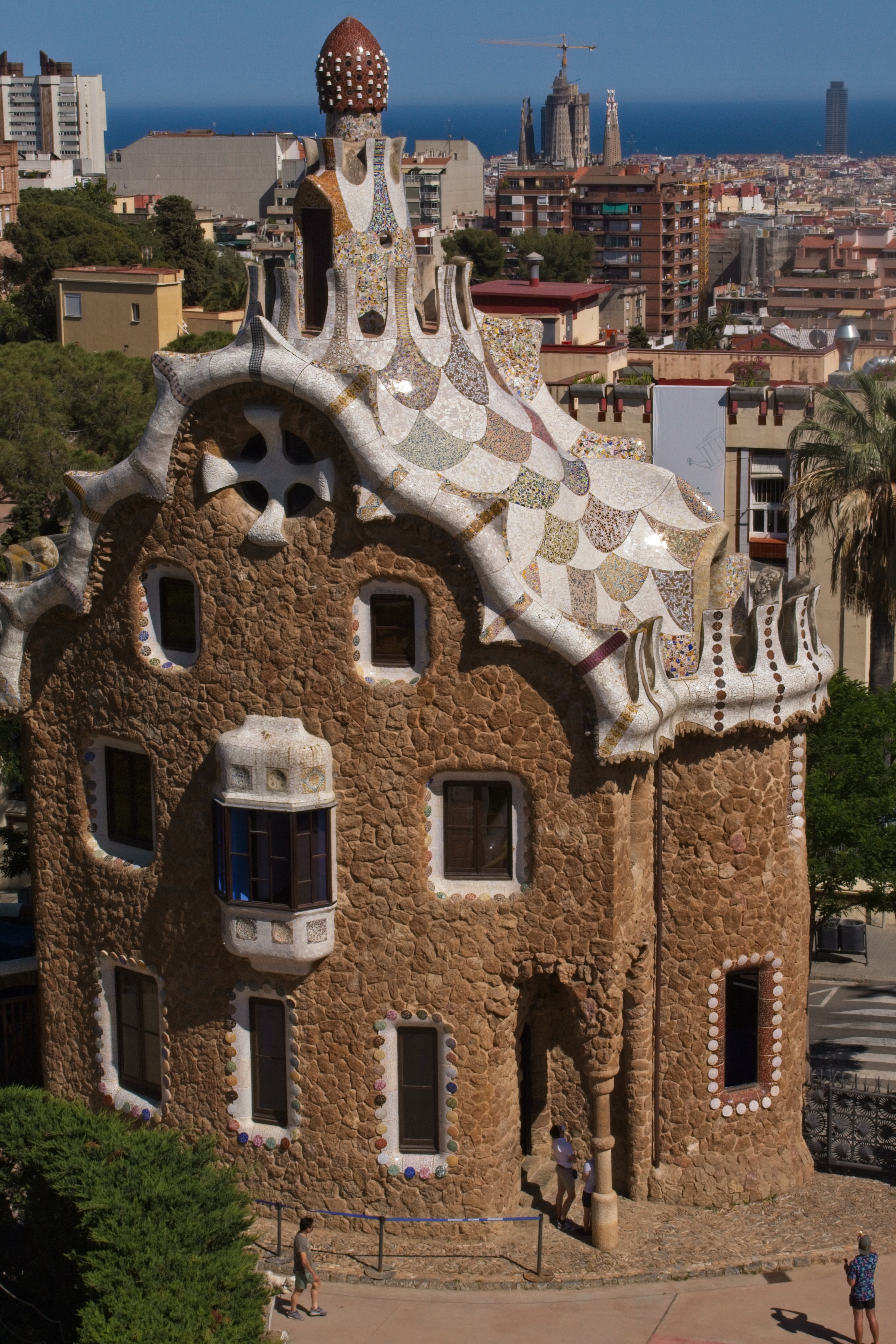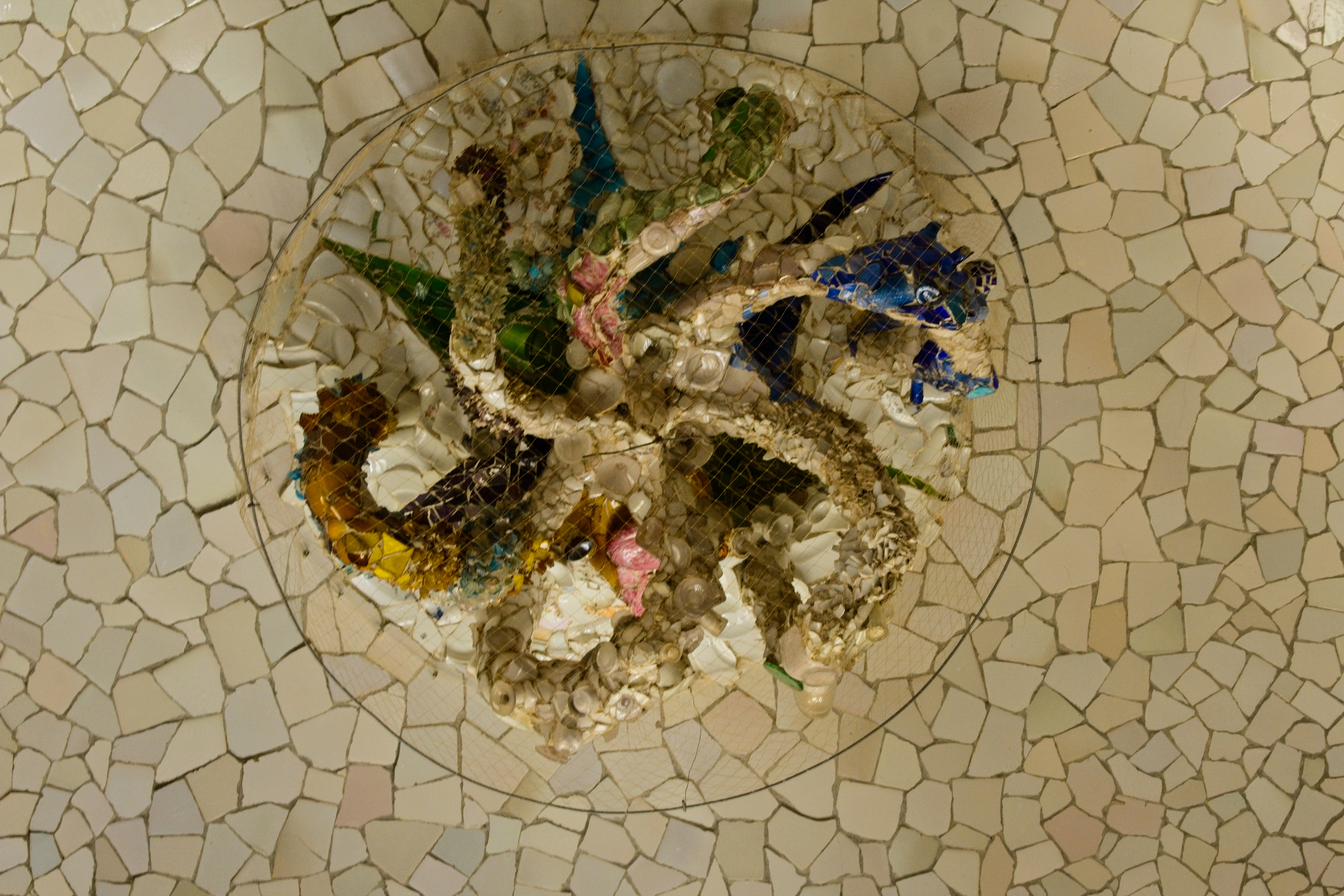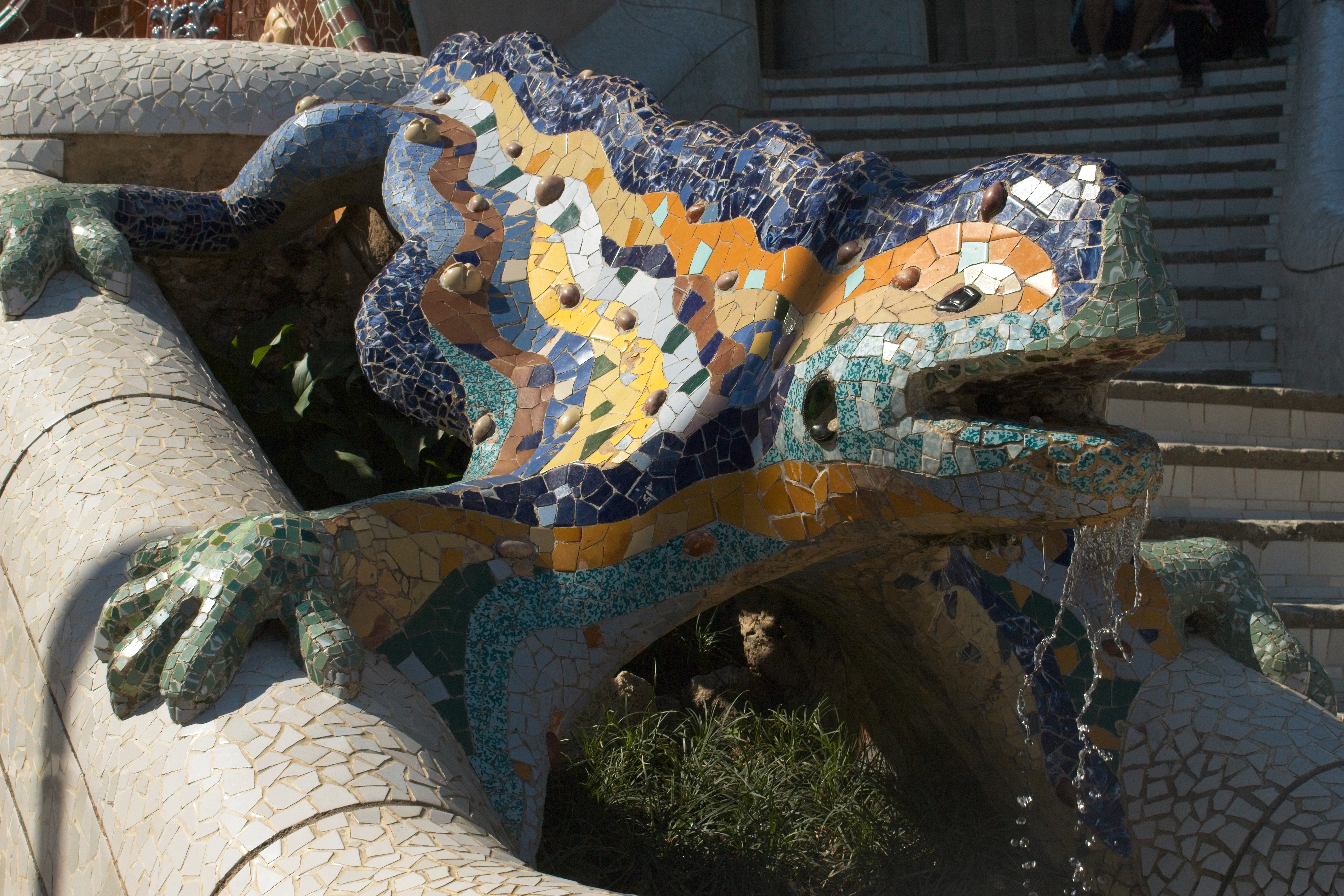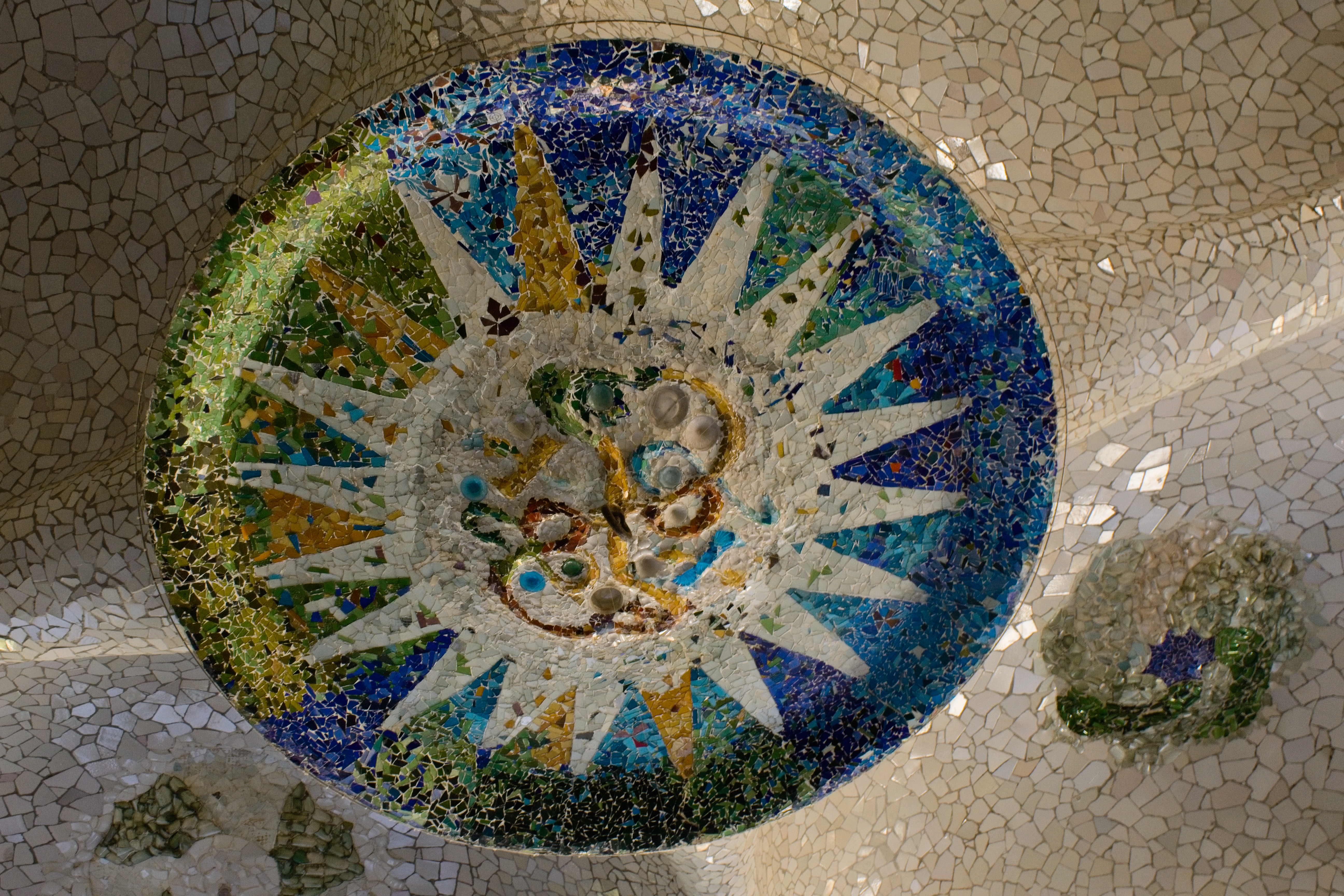 The “Serpentine Bench.” It was built in this shape on purpose to give groups privacy in crowds; the bumps in the foreground are on the bench seat to keep people’s behinds out of the gutters. The broken tilework is a Gaudí signature; it allowed him to decorate his sinuous shapes with tiles and the effect is remarkable.