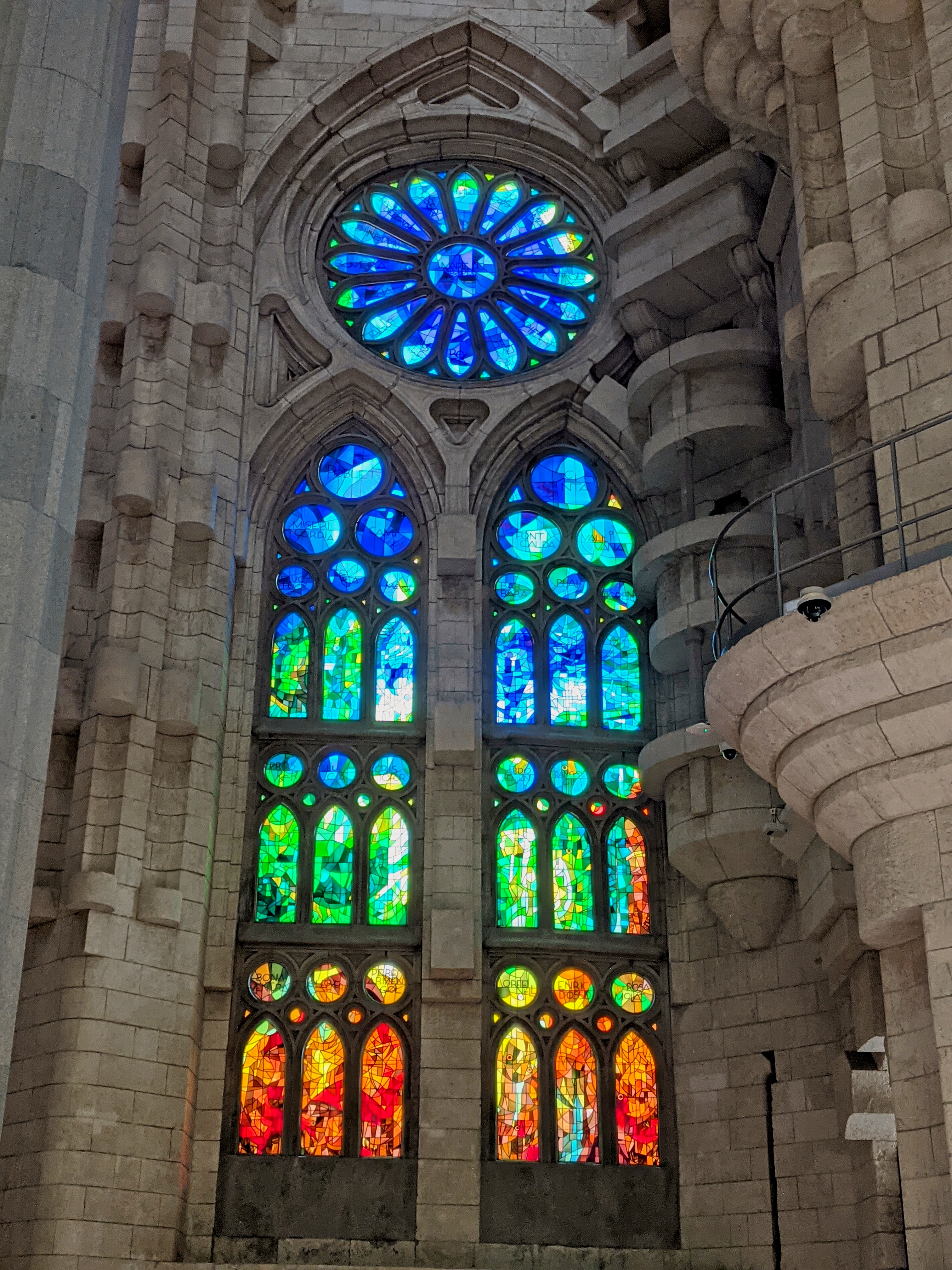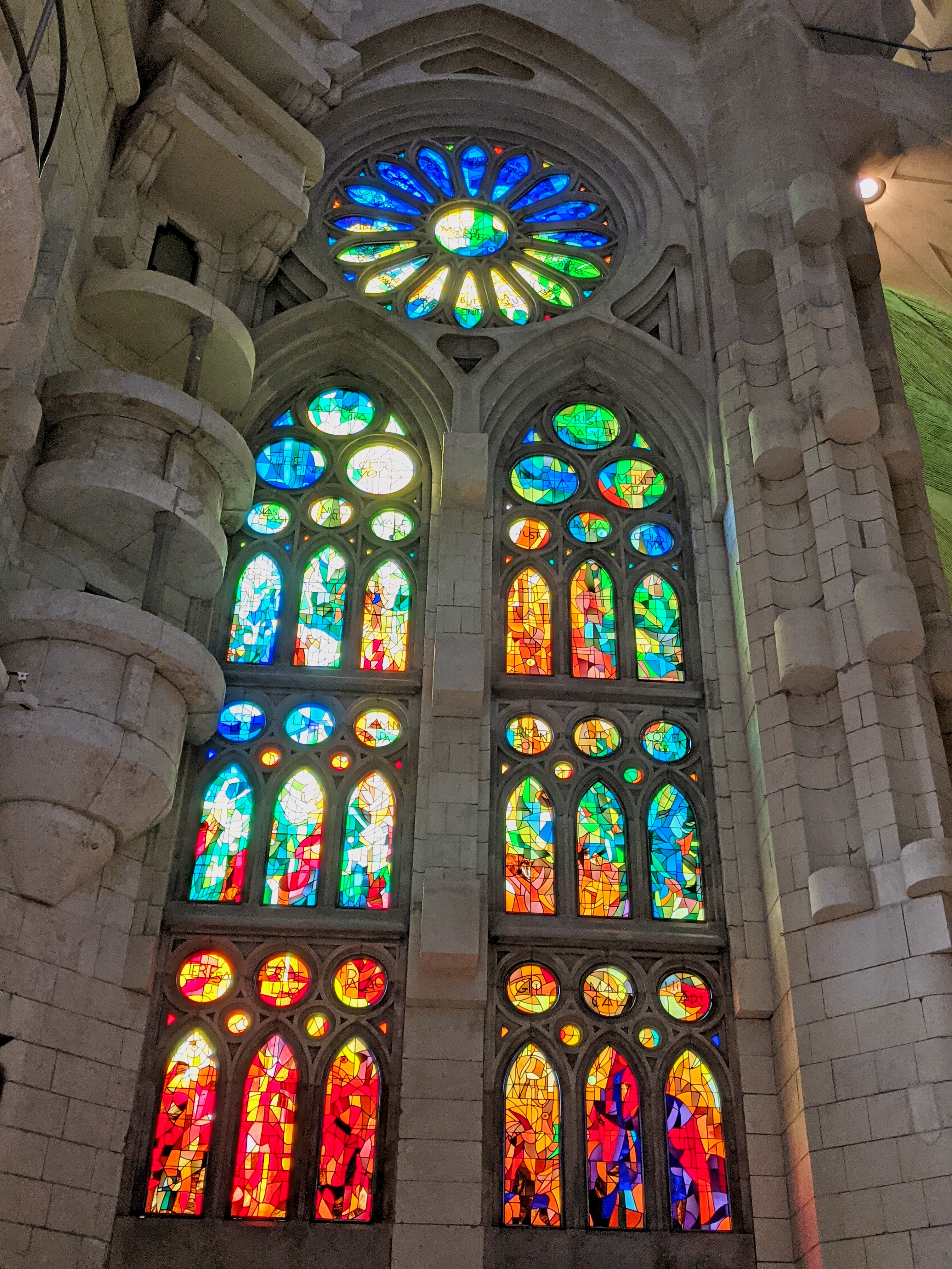 You knew it was coming. Everybody has to go see La Sagrada Familia, Gaudí’s ultimate work and contribution to Barcelona. We’re no different and now you get to see our version of the pictures everybody takes of this remarkable building. My (Steve) takeaways: from a distance it’s an eyesore, all out of proportion to the neighborhood and just dominant on the skyline. Close in, the textures and designs on the exterior are much more interesting and pleasing. Inside is just jaw dropping. I’m glad we went to see it.