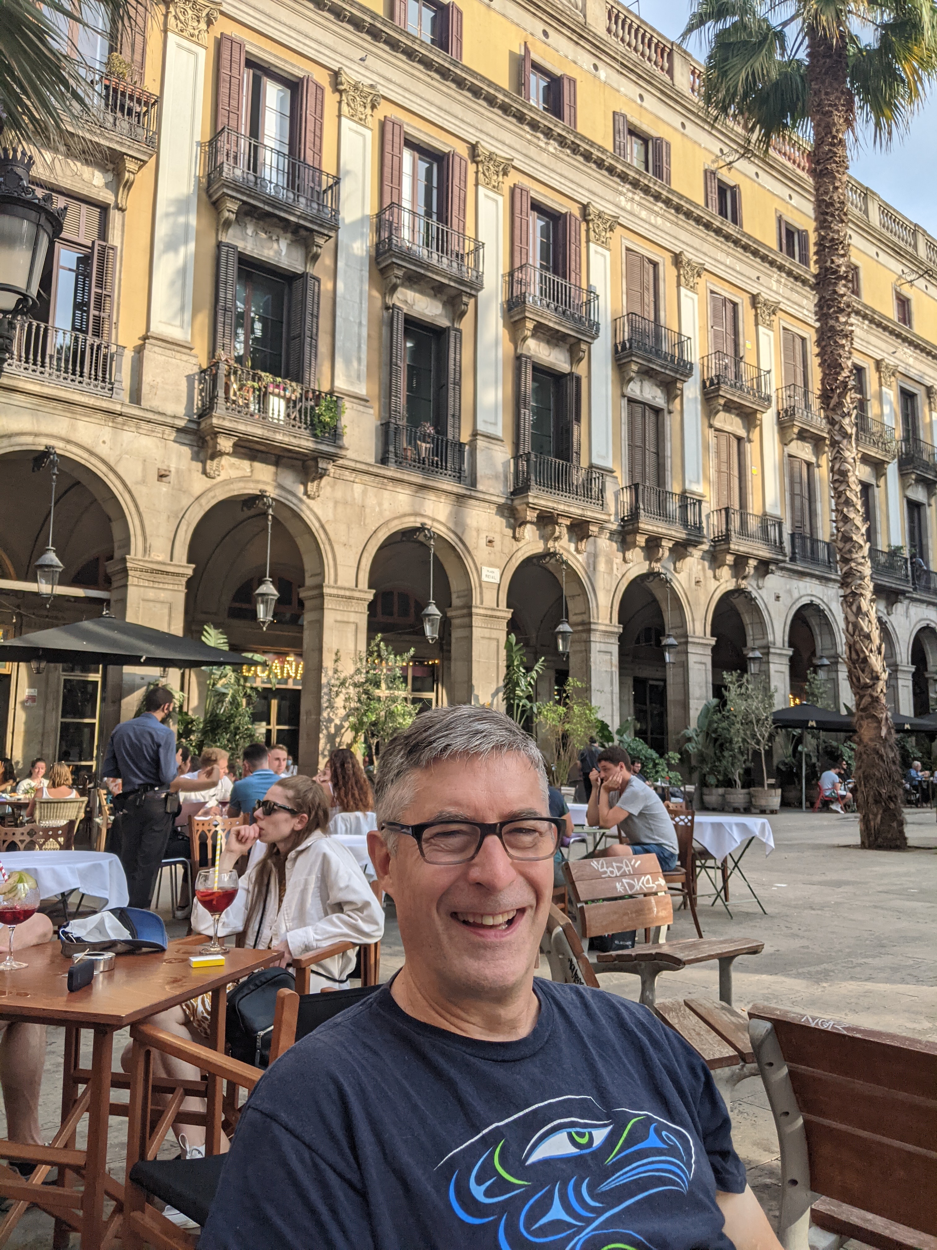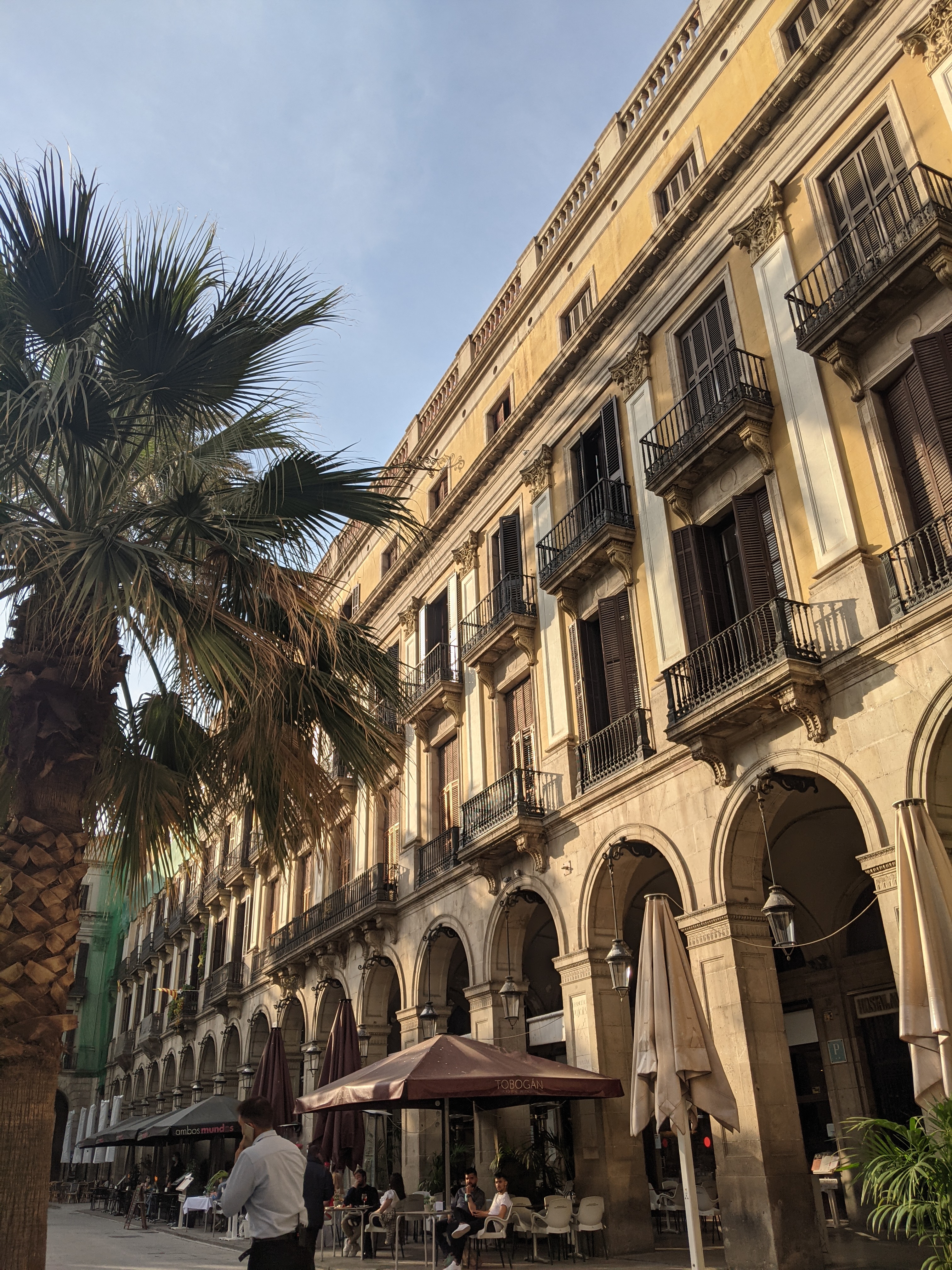 We stumbled across the Plaza Reial and decided that it was perfect for a little drink. We discovered later that it was built in the 19th C using Cuban sugar plantation money, which accounts for the Colonial style buildings and the Cuban palm trees.