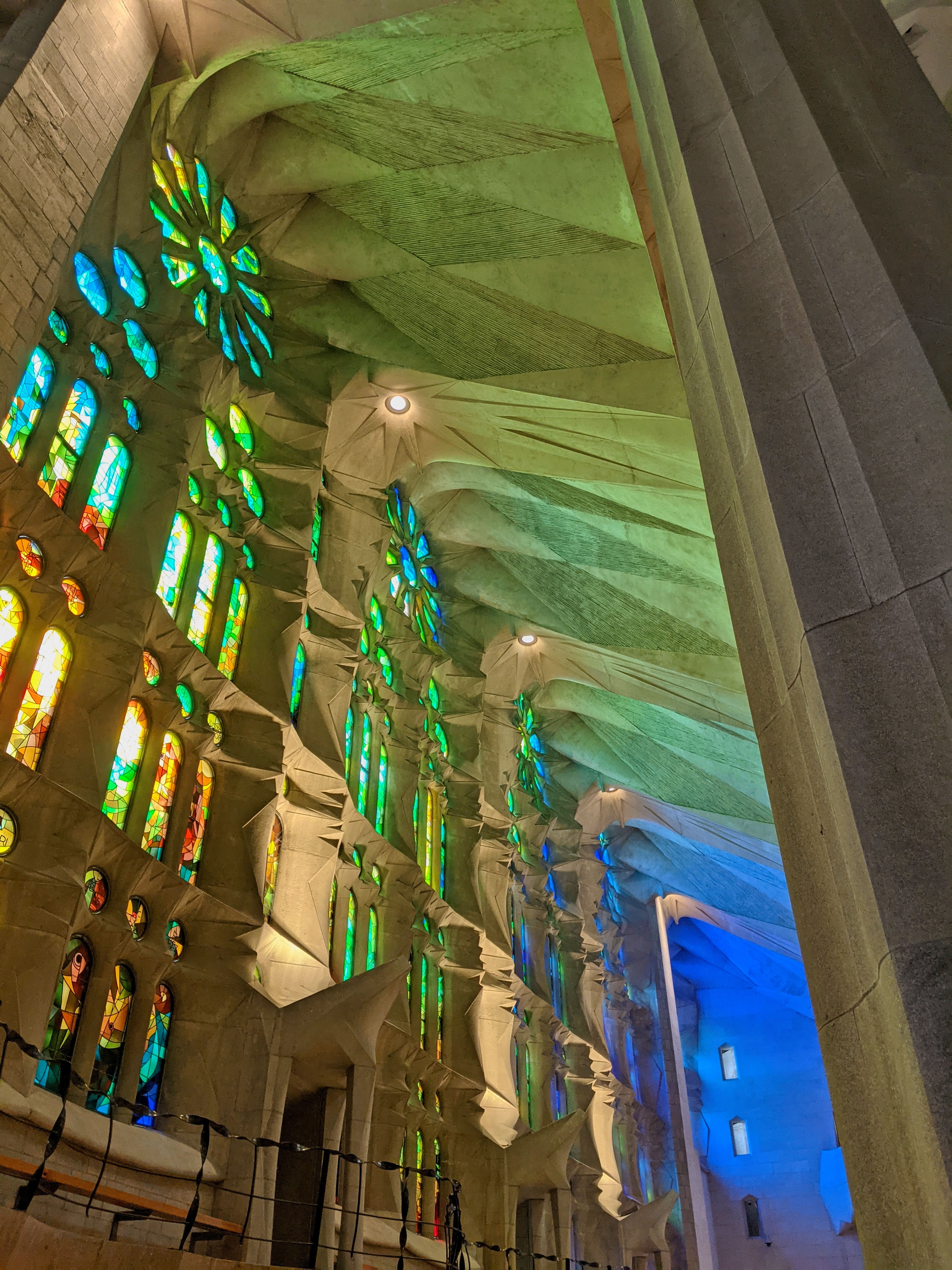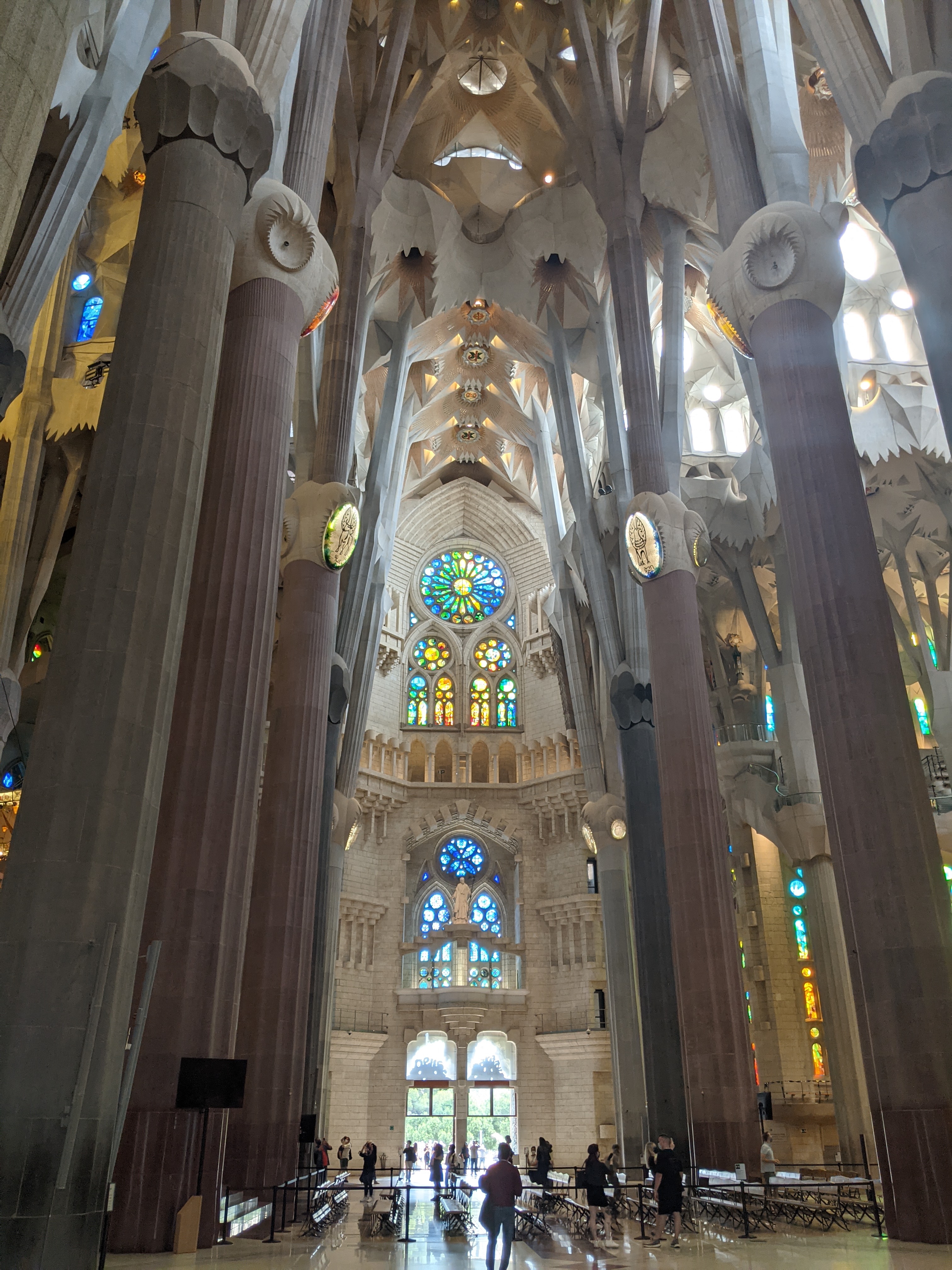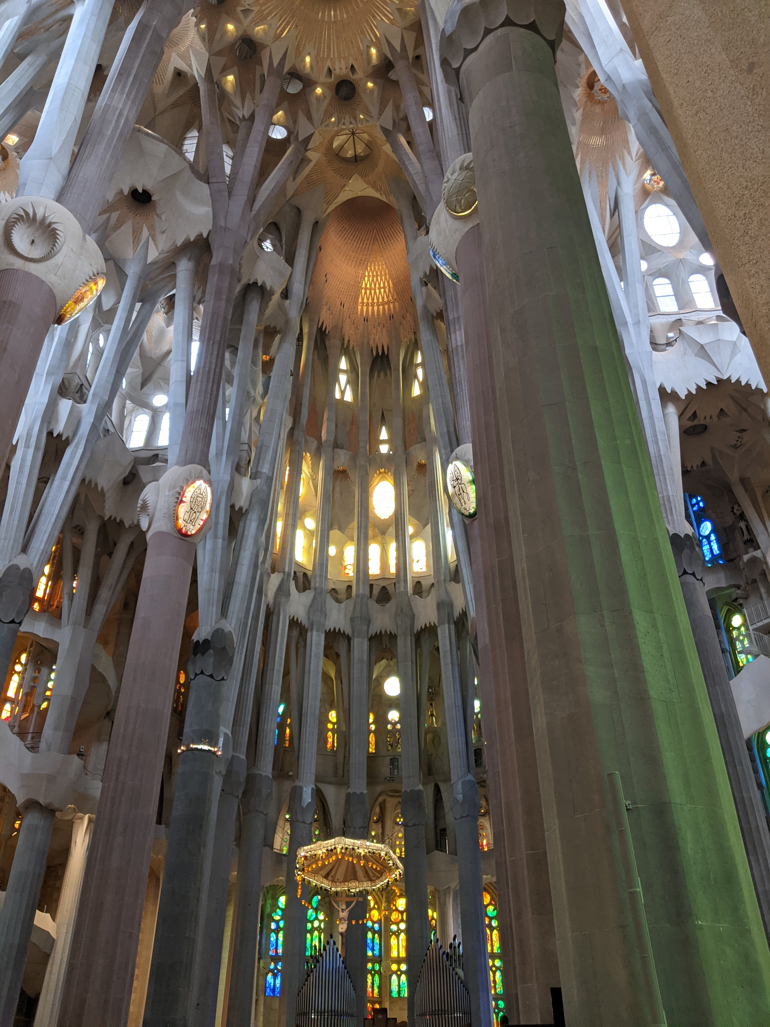 Barcelona is all about the Gaudí or at least that’s the most prominent thing you will be exposed to on your first trip. Briefly, Gaudí was an architect in the late 19th and early 20th centuries who famously re-invented design and space in buildings. Some details I didn’t know: he not only designed buildings but often all of the fixtures and furniture that went into them. The money to fund him and his rivals came from Cuban sugar plantations, which were largely owned by Catalonian plantation owners, who brought the money back to Barcelona and built monuments to themselves like American robber-barons. Gaudí was a mathematical genius and used the catenary (the shape a chain makes when it hangs) as one of the main shapes that made up the arches holding up his constructions. Turns out they can be made light and are incredibly strong. You can discover more about Gaudí and his math here: https://mathstat.slu.edu/escher/index.php/The_Geometry_of_Antoni_Gaudi
