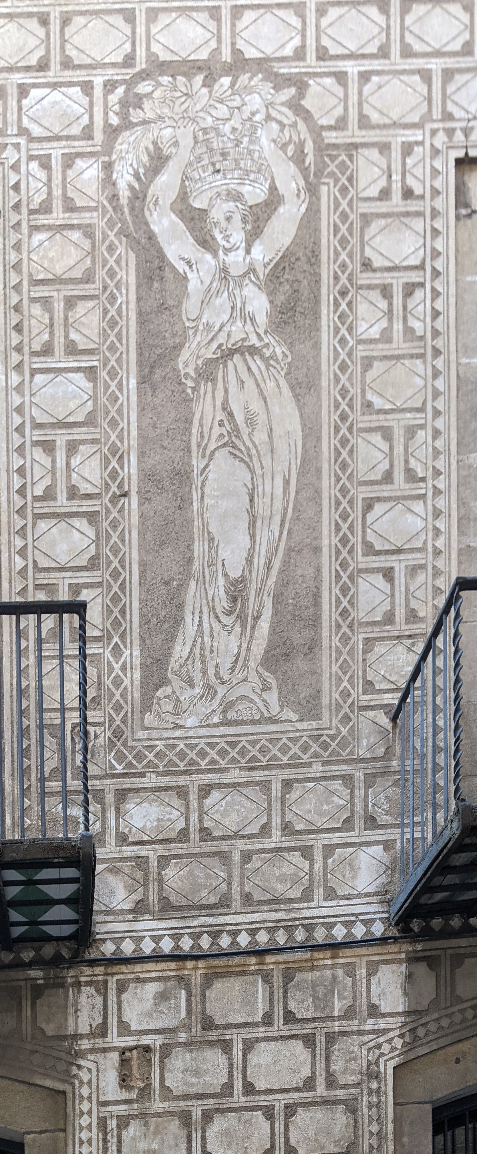 Random detail from a building (don’t remember where) with figures carved into the stucco. These were common around town.