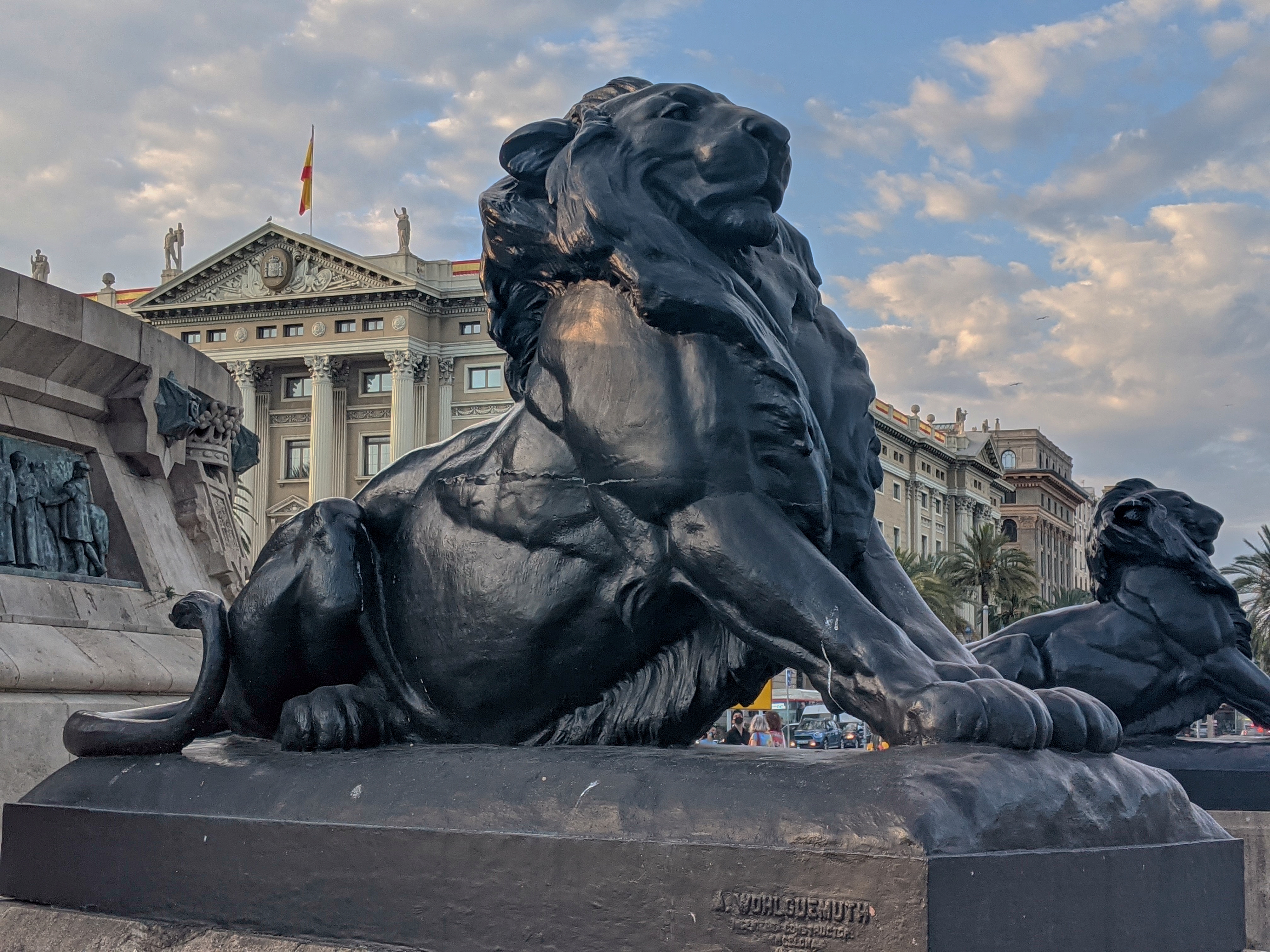 Big kitties at the foot of the Columbus monument