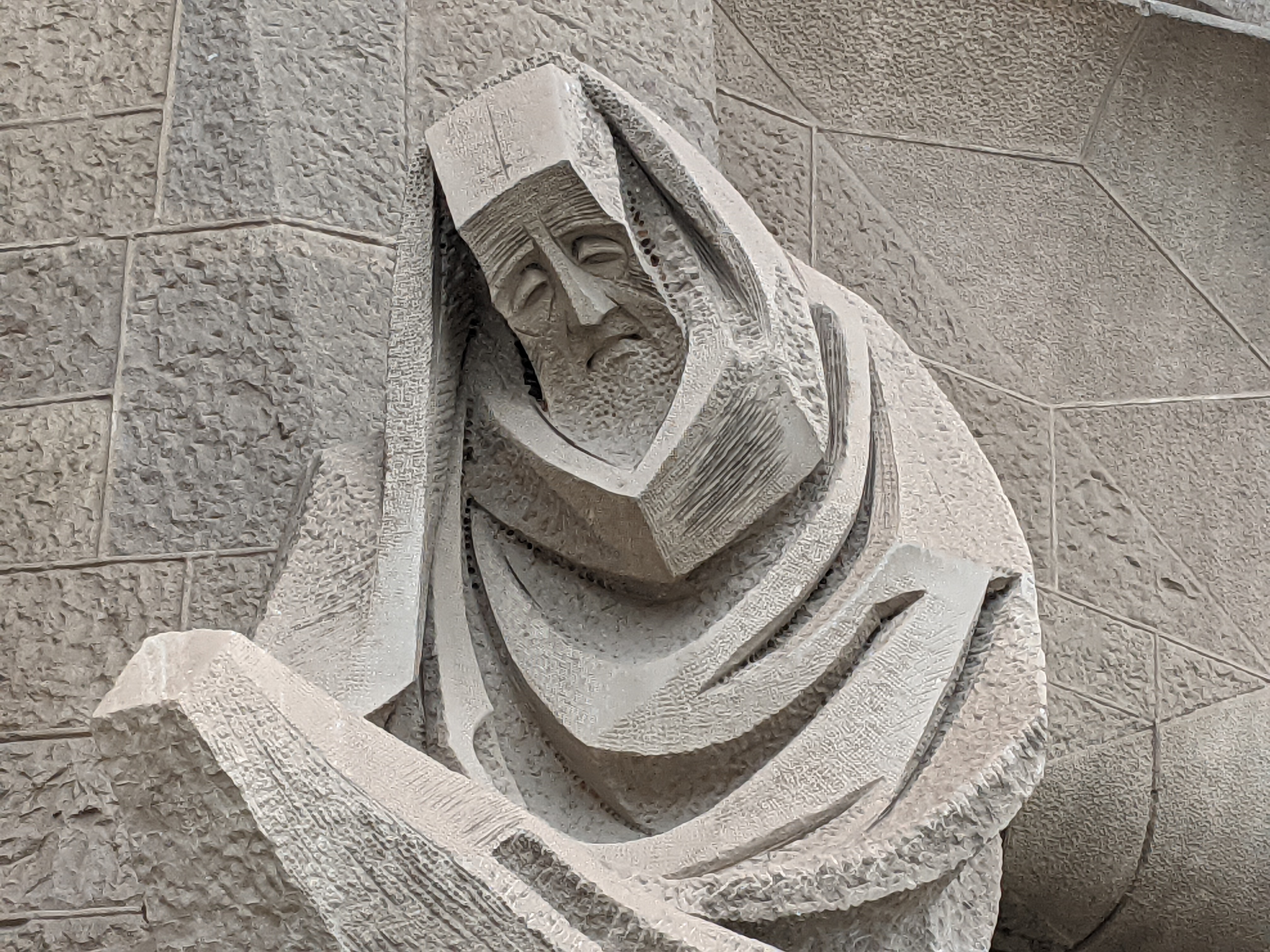 One exits at the Passion facade (which will ultimately be the main entrance to the church), which depicts the crucifixion. Here’s St. Peter being sad. The figures were all carved in this style which is meant to strike fear into the viewer.