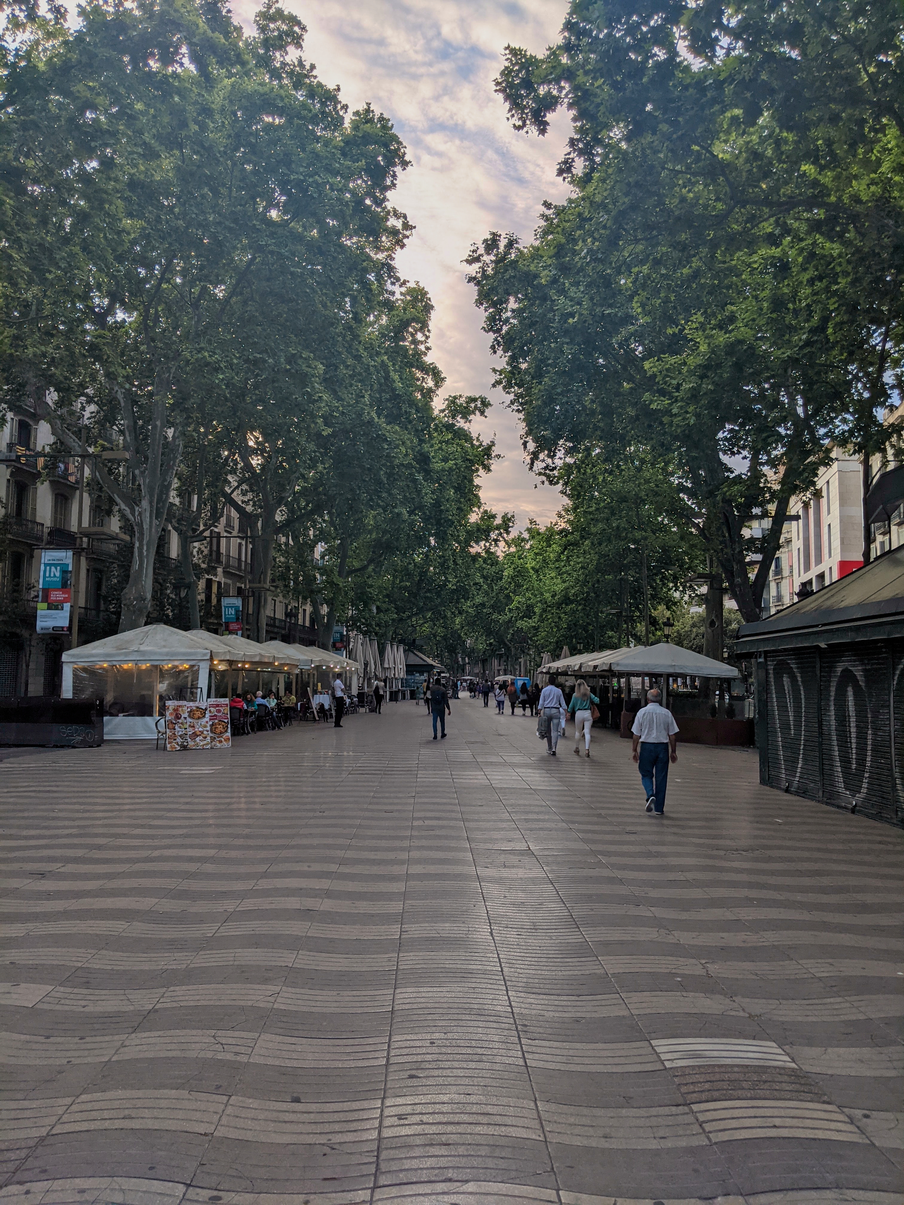 First thing we did was take a walk. This is the famous Rambla and you will never see it as empty as this again.